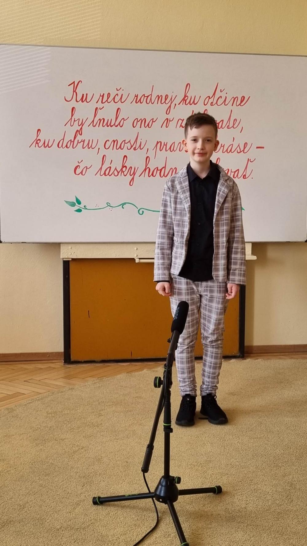 V kategórii žiakov 5. - 6. ročníka ZŠ reprezentoval okres Prievidza Dorian Kasan. V umeleckom prednese poézie sa umiestnil na krásnom 2. mieste!